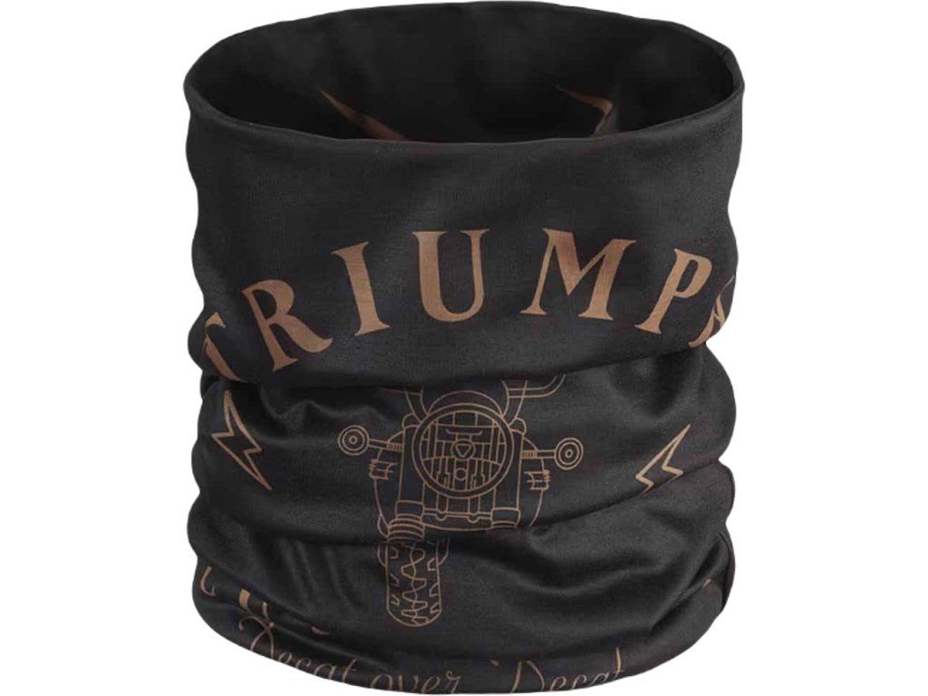Triumph Decaf Neck Tube černá/zlatá s reverzibilním designem. Ikonické logo Triumph v zlaté barvě a výrazné blesky. Měkký stretch materiál pro pohodlí. One size fits all.